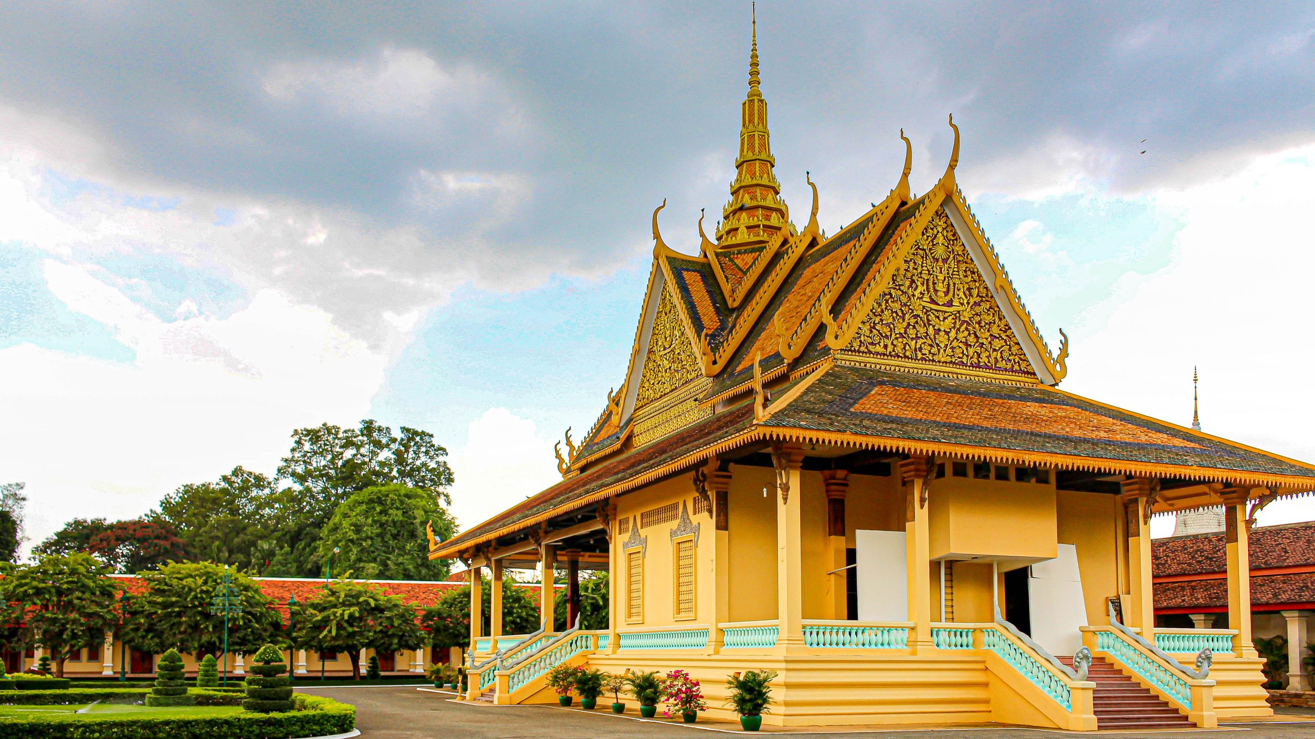 A stunning example of traditional Khmer architecture with a glittering gold roof, serving as the official residence of the King of Cambodia.